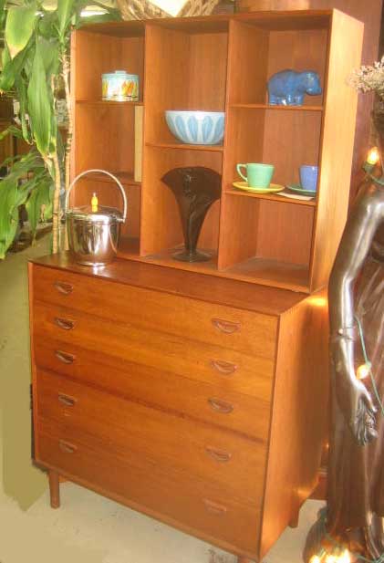 Danish Moderne teak hutch attributed to Peter Huidt, with 5 drawers and adjustable shelving on top.