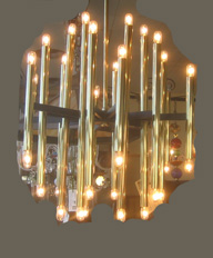 # 2250 Midcentury chandelier in brass and bulbs. Sconce available on request.