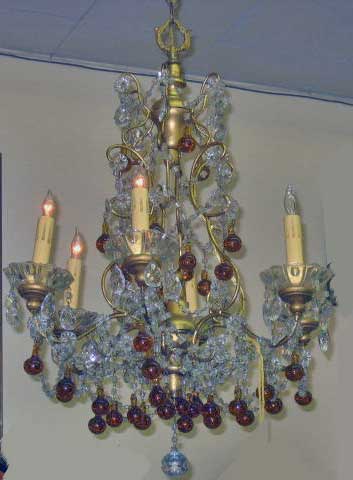 # 2292 Italian cut crystal chandelier with amber teardrops, circa 1930 29" tall x 23" diameter
