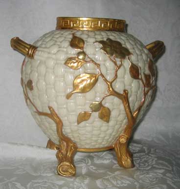 Royal Worcester large vase w/basketweave background, branches and leaves INVENTORY # 2323