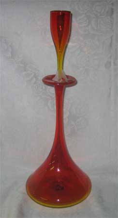 Blenko decanter w/shot glass stopper by Wayne Husted circa 1955 17" tall