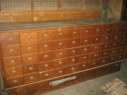 50 Drawer Oak Display Case from Grand Rapids Showcase Co. 8' wide x 26" deep x 42" tall